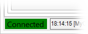 Ha nincs, csatlakozva, vagy a kapcsolat megszakadt, akkor piros a hátter. Ha csatlakozva van, akkor zöld színű a háttér.