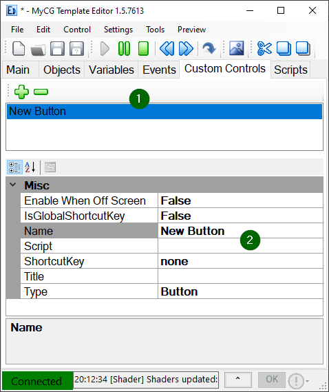 - Name: A vezérlő neve. Ilyen néven hívja meg a Script részben definiált scripteket.