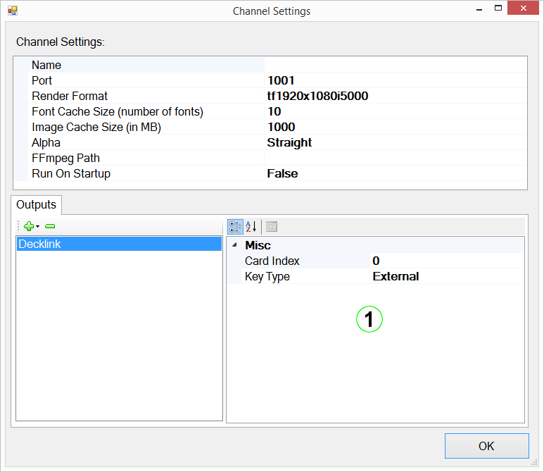 - Card Index: A Blackmagic Design Decklink kártya indexe (1, vagy annál nagyobb szám).