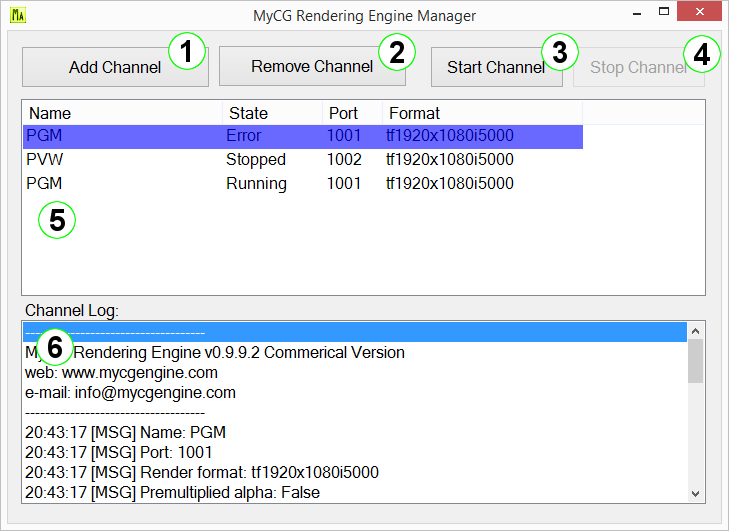 - (1) Add Channel: Új csatorna hozzáadása a rendszerhez.