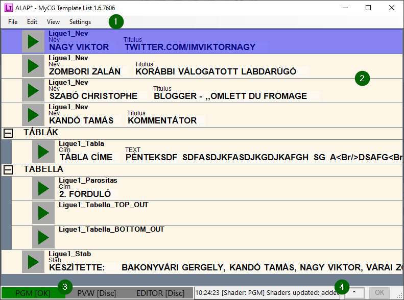 2. Sablon lista: A MyCG Engine-be betöltött sablonok itt láthatóak.