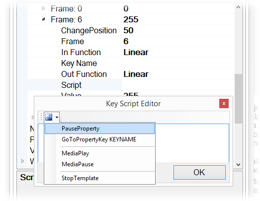 gombra. A megjelenő Key Script Editor ablakba írjuk be hogy "PauseProperty" vagy az eszköztárból válasszuk ki ugyanezt, majd kattintsunk az OK gobra.