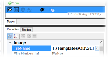 - A Filename tulajdonságot a névinzert hátterére. Ezt többféleképpen thetjük meg. Az Objektum Listában a dupla kattintással az objektumra, vagy a Filename tulajdonság mellé beírva, vagy a