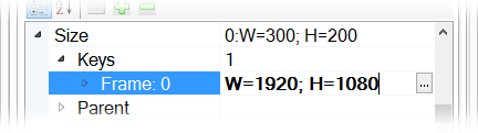 Be kell állítani az objektum kívánt méretét a Size tulajdonság 0. képkockához tartozó key frame-nél: