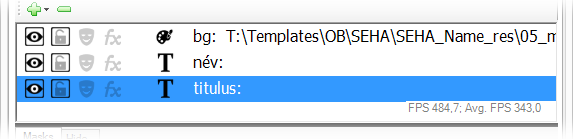 Text objektumot. Ugyanúgy, mint az Image objektumot, majd elnevezzük őket a Name tulajdonság átírásával. Az egyik legyen "név" a másik "titulus". Az objektum lista így néz ki: