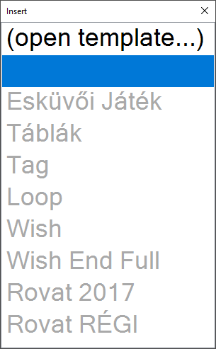 Sablon beszúrásakor lehetőség van definiálni gyors elérést a gyakran használt sablonokhoz. A gyors elérésen belül kategóriákba rendezhetőek a sablonok.