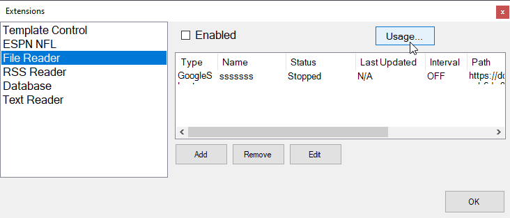 Az adott bővítmény használatához példákat a bővítmény kezelőben az Usage... gompra kettintva lehet találni.